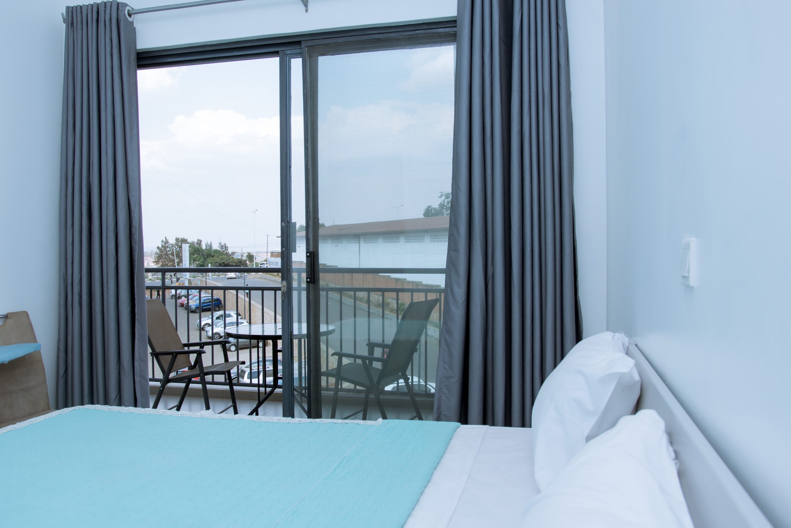 Each apartment features a private balcony where you can enjoy the city skyline, relax with a drink.